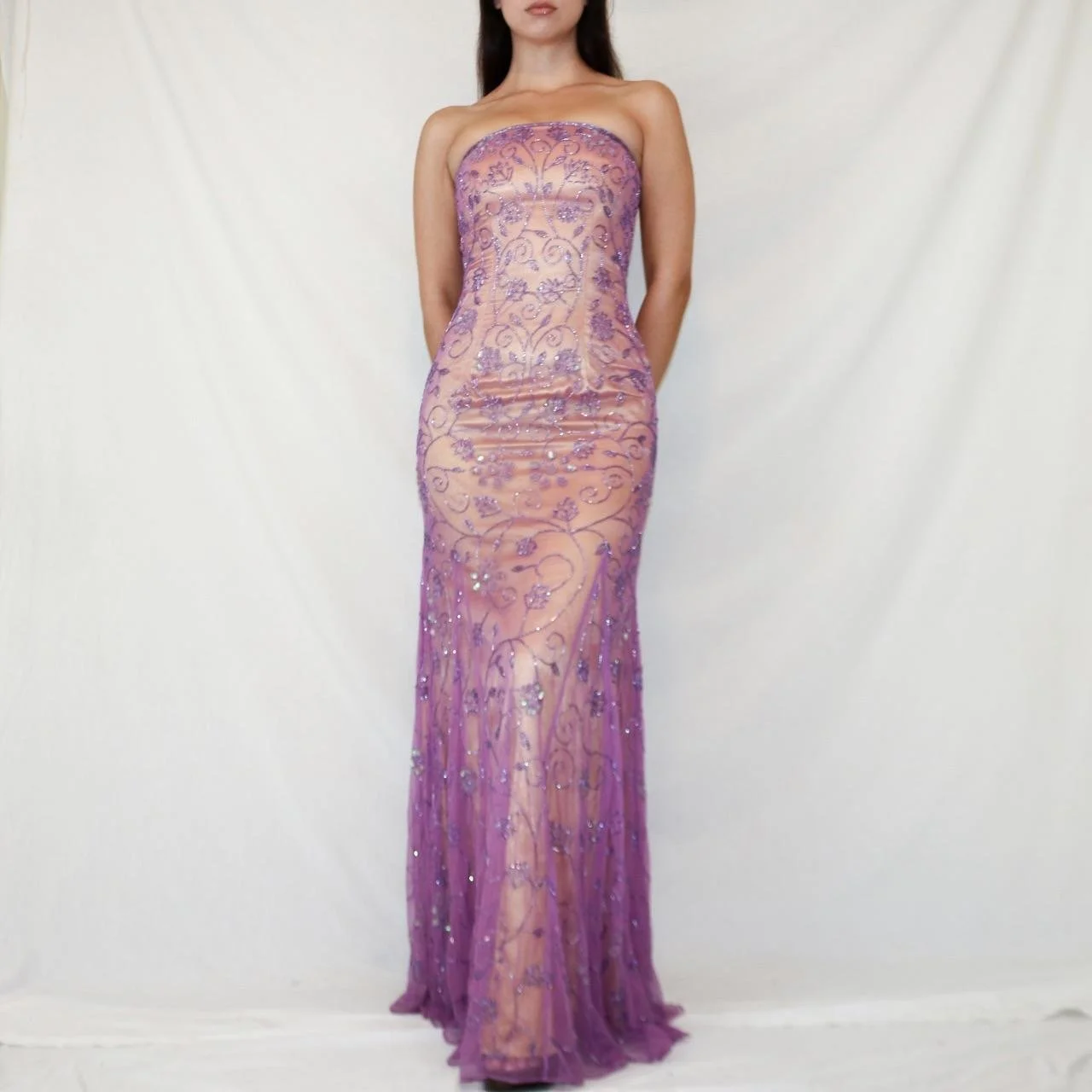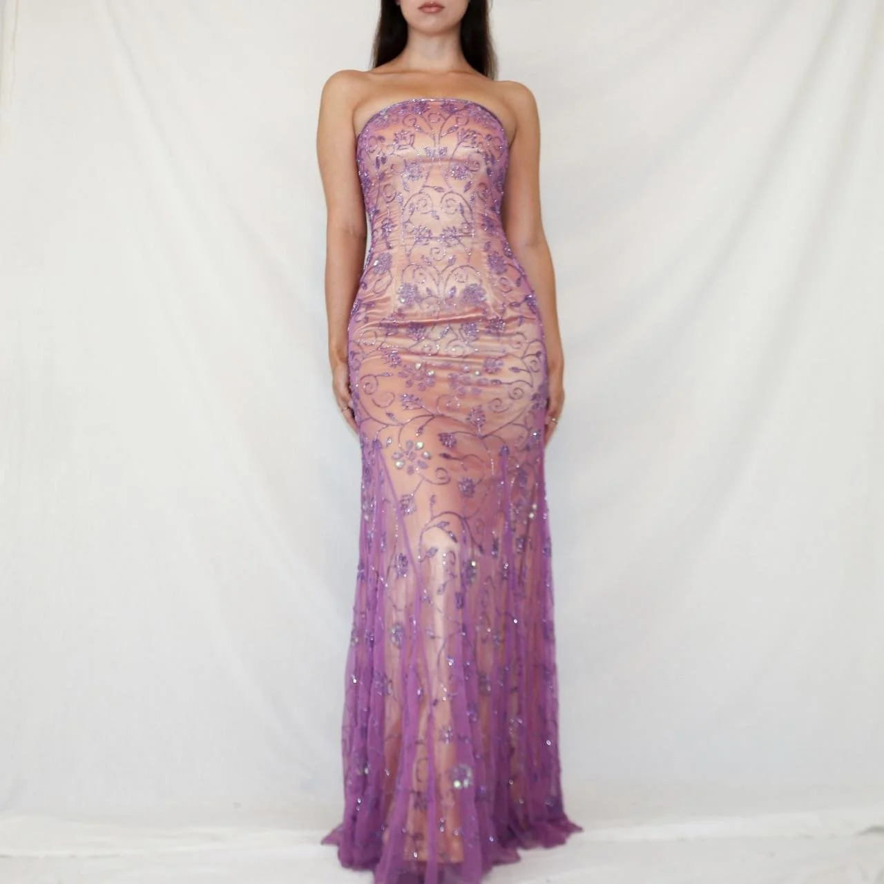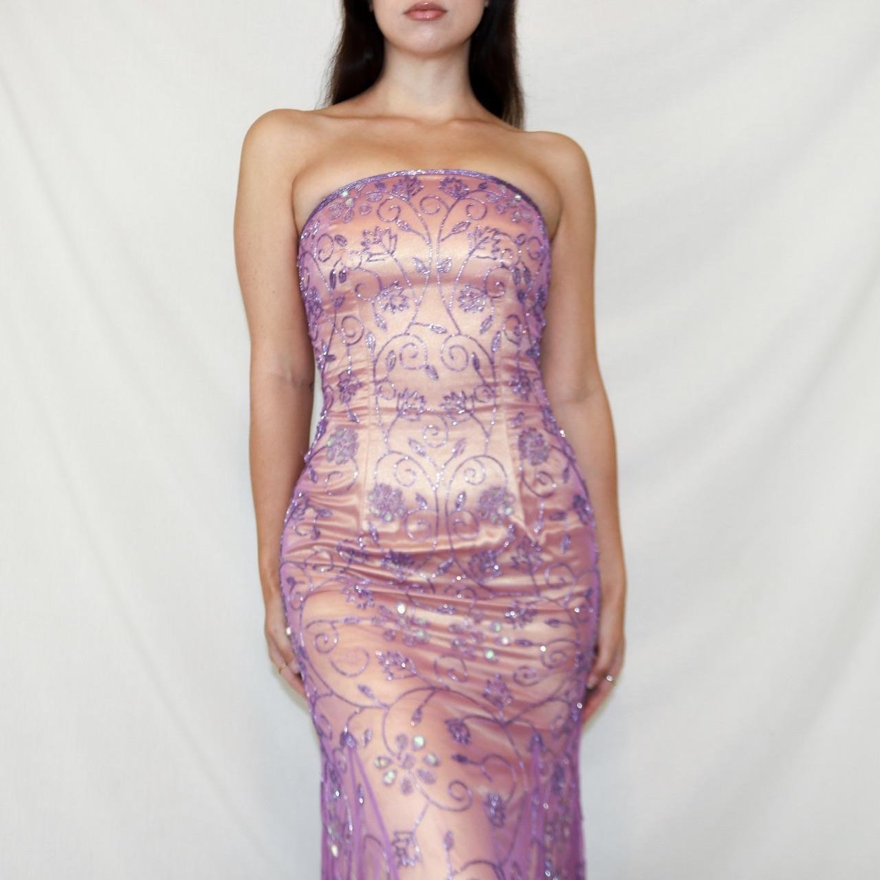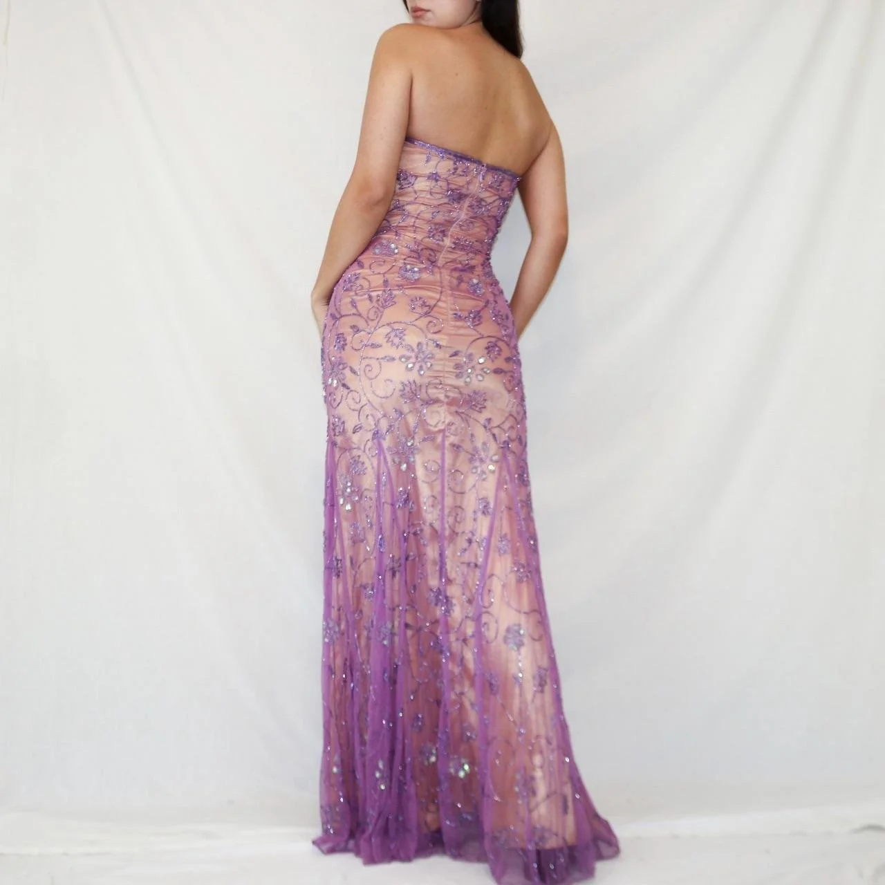 Gorgeous purple satin gown, beading all over, so perfect for prom!