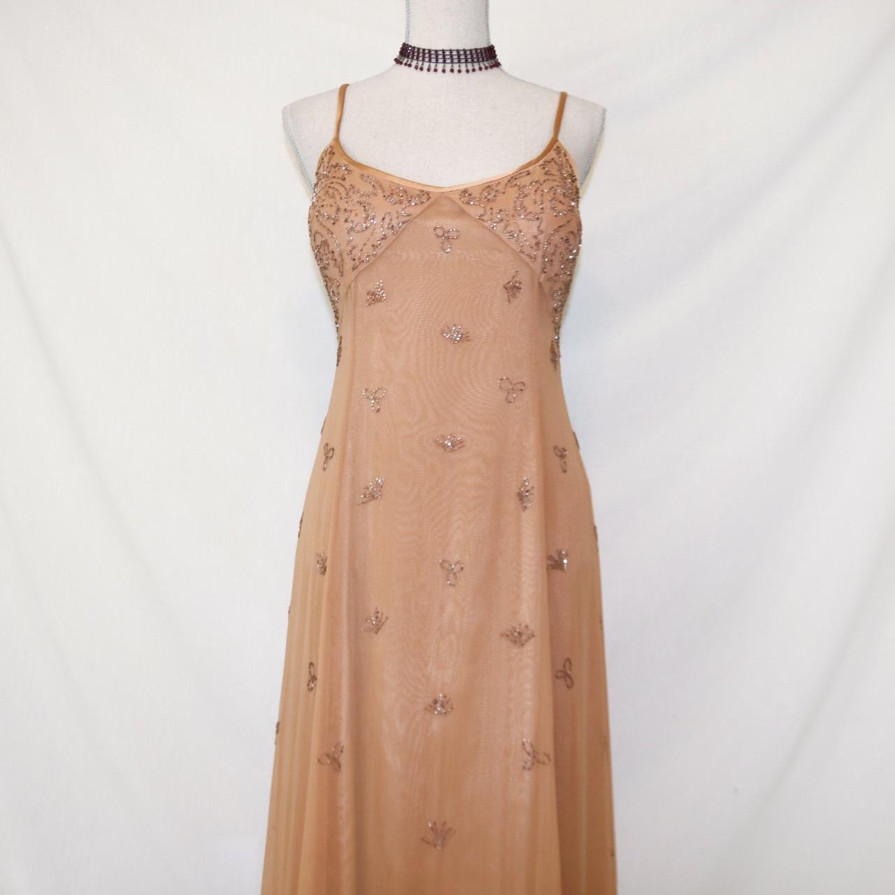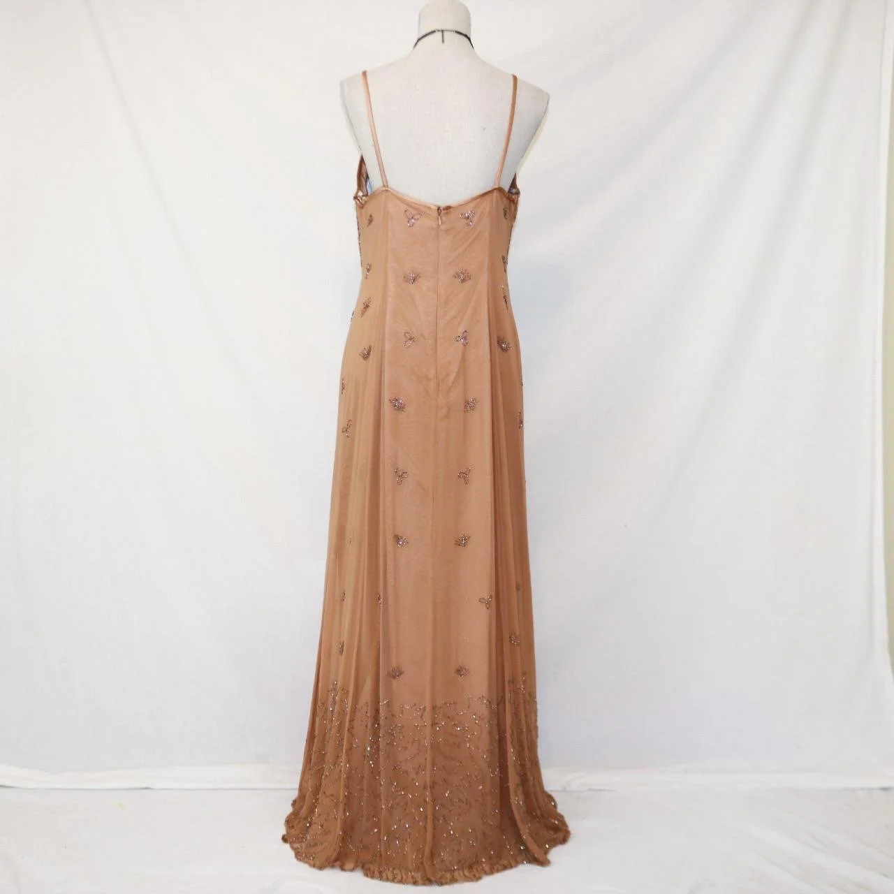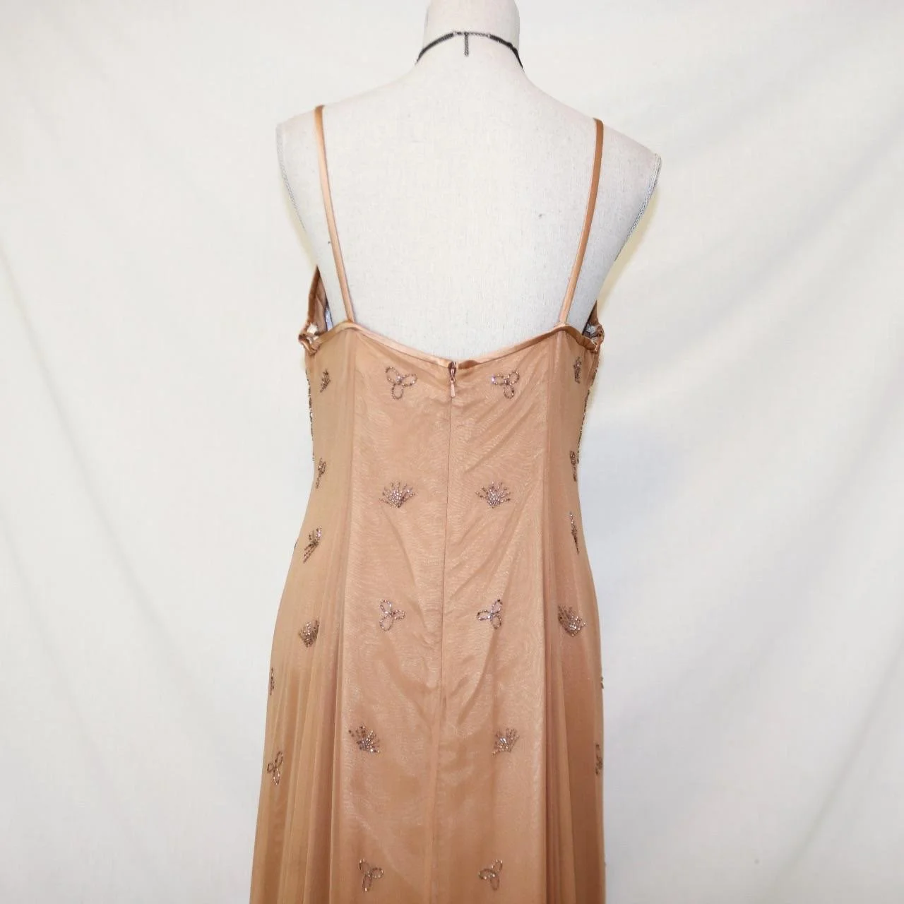 Gorgeous tan gown, beaded floral design, perfect for prom or a gala!