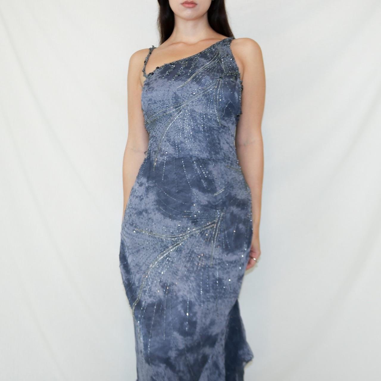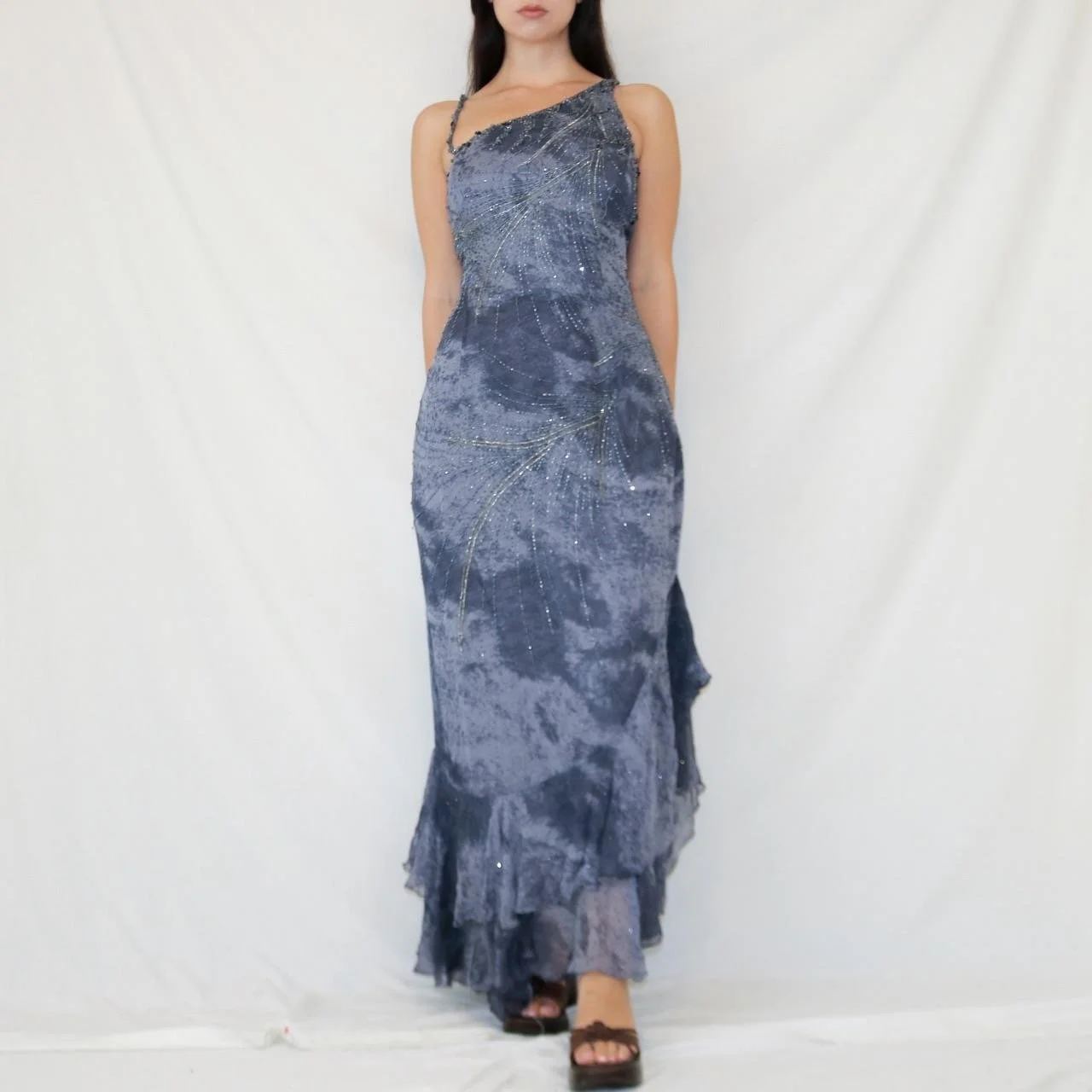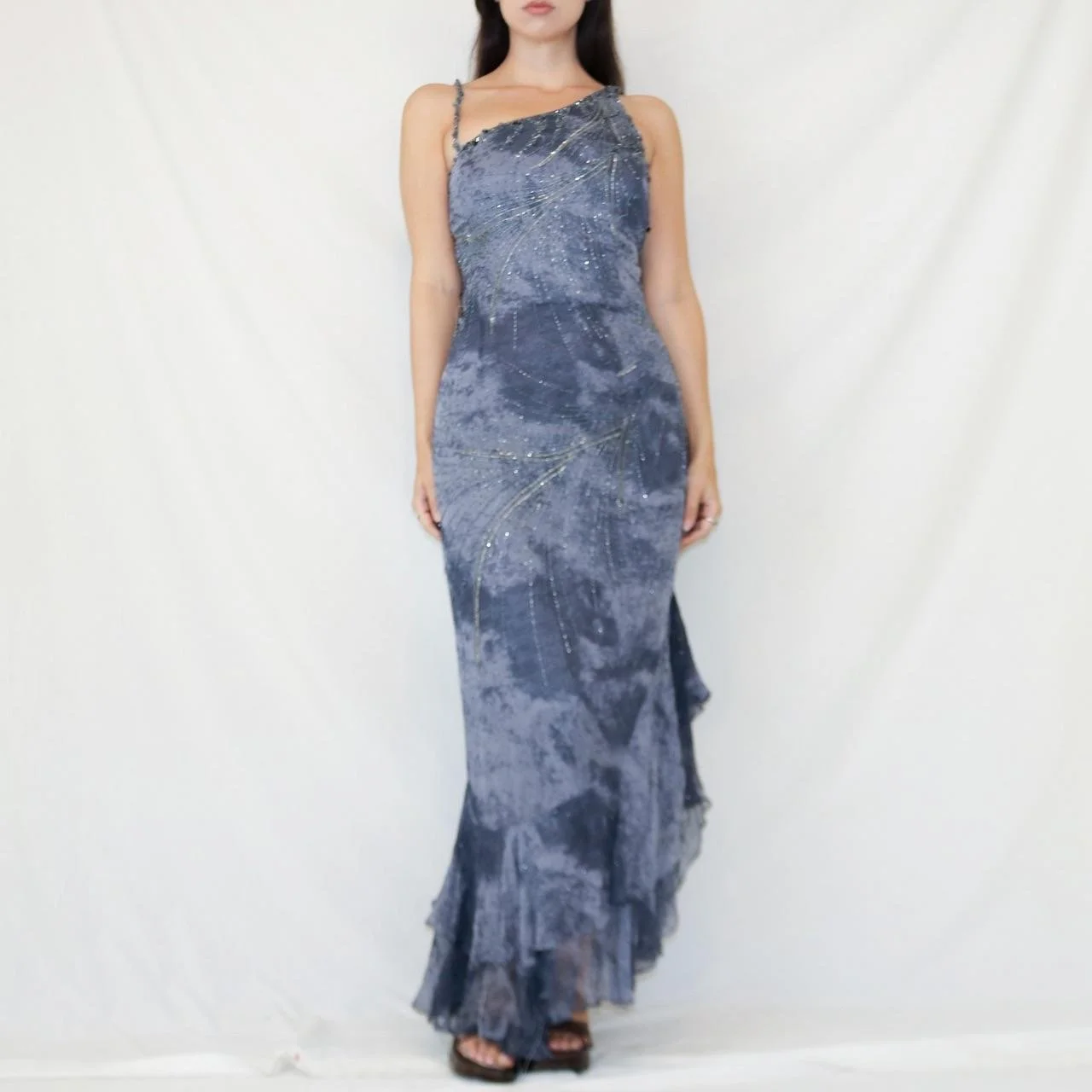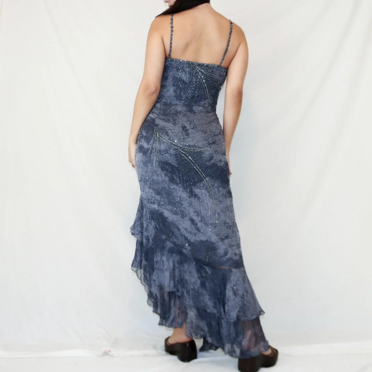 Breathtaking vintage watercolor beaded dress, flutter hem, perfect for prom!