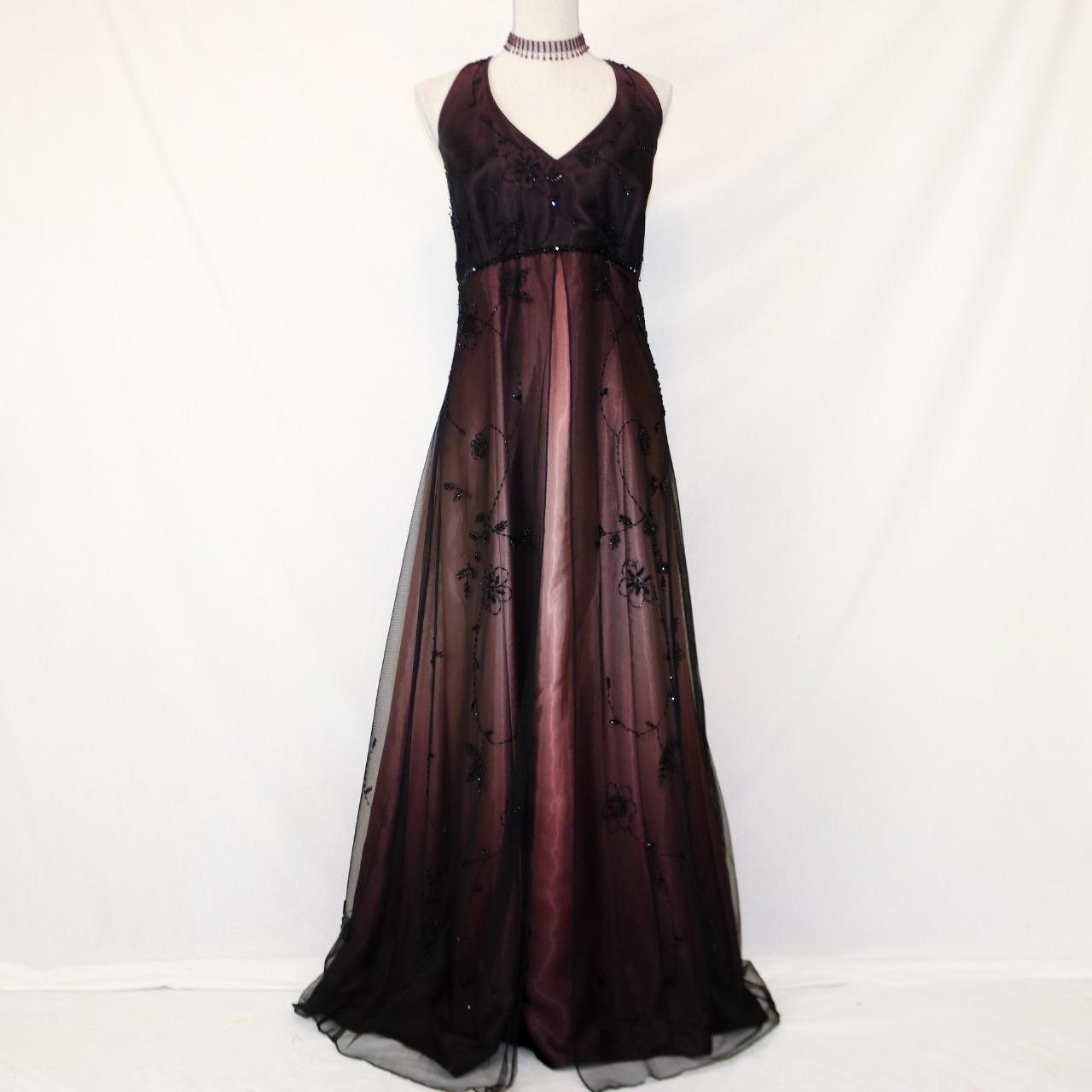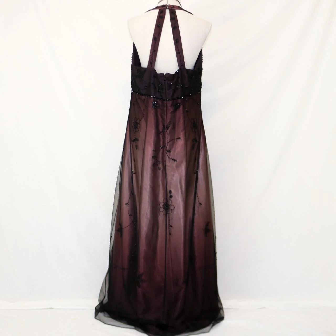 Breathtaking vintage pinkish brown ombré empire waist dress with floral beaded mesh overlay, perfect for prom!